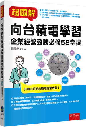 作者序言 第一篇 成功根基篇 第1 堂 台積電成功最重要6 大根基:願景、人才、企業文化、策略、技術、經營理念 第二篇 策略篇 第三篇 供應鏈合作篇 第四篇 企業願景與核心價值觀 第五篇 強大財務篇 第六篇 公司治理篇 第七篇 價值經營篇 第八篇 技術領先篇 第九篇 卓越製造篇 第十篇 客戶信任篇 第十一篇 領導力篇 第十二篇 人才篇 第十三篇 品質管理篇 第十四篇 未來業務發展篇 第十五篇 考績篇 第十六篇 台積電做好企業「風險管理」篇 第十七篇 台積電護城河篇 第十八篇 抓住AI 新商機篇 第十九篇 台積電組織圖及各部門職掌簡介篇 第二十篇 公益篇 第二十一篇 員工溝通管道篇 第二十二篇 ESG 實踐篇 第二十三篇 經營團隊篇 第二十四篇 人資「DEI」實踐篇 第二十五篇 總結論/總歸納篇 第二十六篇 最新公司資訊 第二十七篇 投顧公司評價魏哲家CEO 第二十八篇 總結語(關鍵21 則信條)